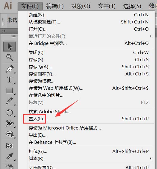 2、在该界面内找到文件菜单里的置入选项,如图所示: