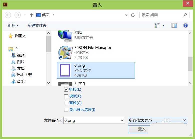 3、点击置入选项,在弹出的对话框内找到我们需要的图片,如图所示: