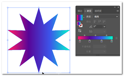 3、给星形形状添加渐变,分别给出红 紫 蓝 青 4个渐变滑块