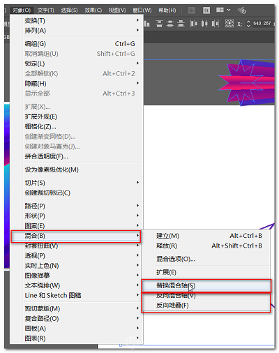 9、也可以再次执行对象-混合-反向混合轴改变颜色方向