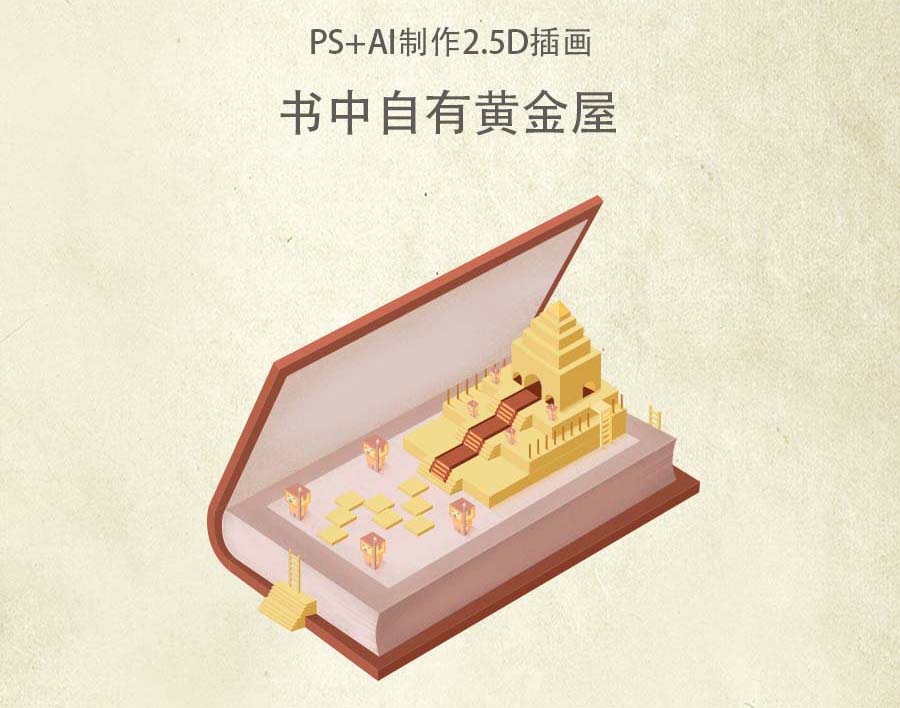 想要设计一款2.5D插画效果的图,该怎么设计呢?下面我们就来看看os制作一款书中自有黄金屋的教程。