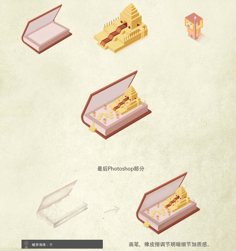 旋转3d板板,做个书皮,用钢笔勾画出书脊,用扩展全部面微调描点,然后调色,详细教程如下文。