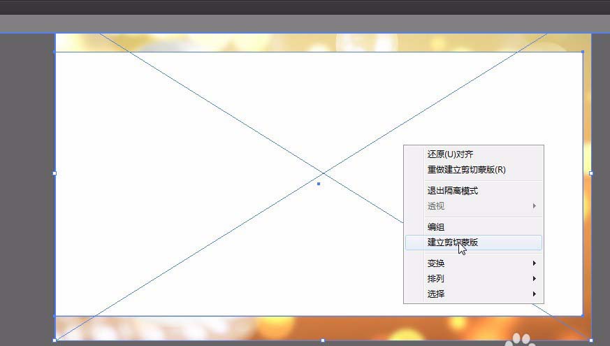 1、新建一个800mmx400mm,颜色模式RGB的页面。按alt+f+l置入一张素材。绘制一个矩形矩形大小800mmx400mm,将图缩小到合适。选中这两层,右键点击建立剪切蒙版。