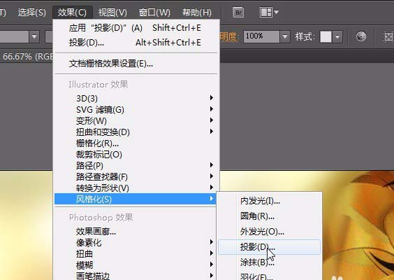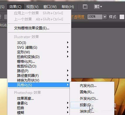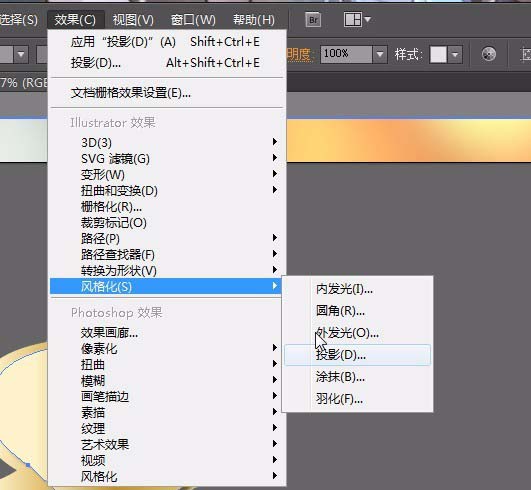 3、按ctrl+c;ctrl+F复制一层,用吸管工具吸取底下的颜色,并用直接选择工具调整成如图形状。点击菜单栏【效果】【风格化】【阴影】输入数值不透明度:61%,X位移:2.39mm,Y位移:1.59mm,模糊:0.8mm,颜色#261e0d;点击确定;