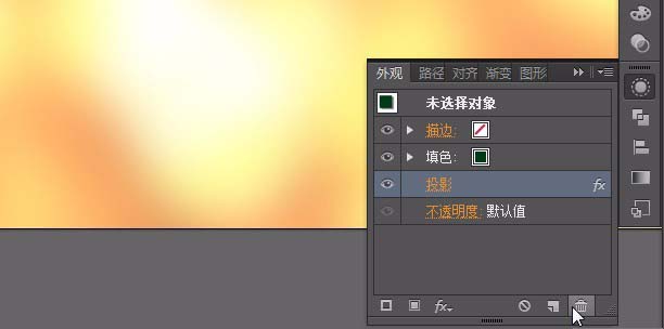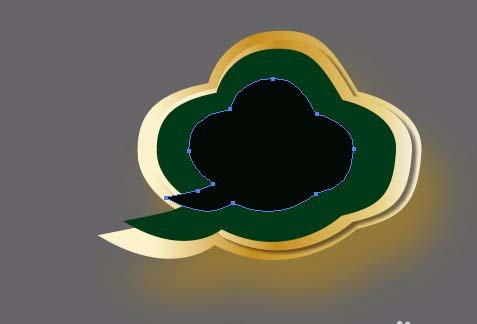 4、给底下图层也用同样方法添加阴影,数值为不透明度:61%,X位移:10.31mm,Y位移:19.47mm,模糊:9.16mm,颜色#b28619;然后选择底下那层,按ctrl+c,ctrl+f复制一层在上面,缩小一些。填充#003a16;按shift+F6,打开外观面板,删除阴影。按ctrl+】键,放置在上层。