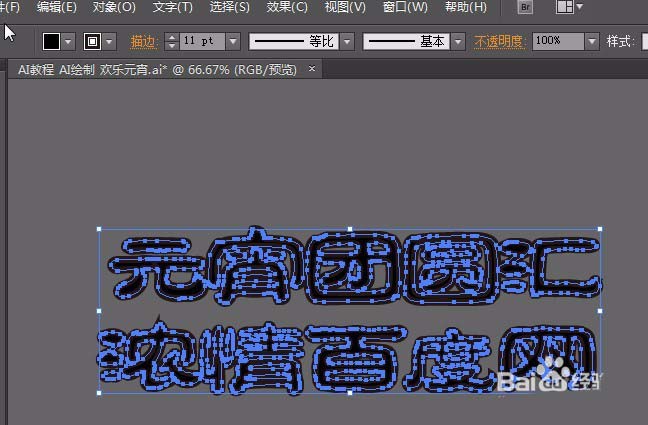 8、输入文字。字体为:方正祥隶简体,大小自定。点右键,创建轮廓。然后点右键取消编组。在属性栏更改描边色#221715,描边大小为11pt;如图。然后点右键取消得到编组。得到一个一个的文字。