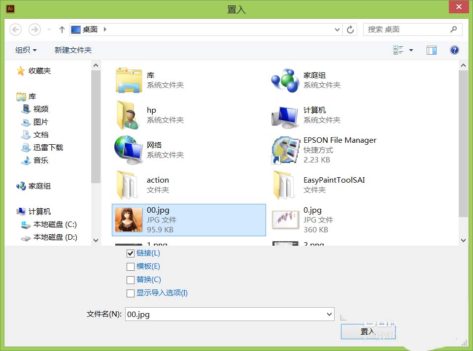 3、点击置入选项在弹出的对话框内找到我们的图片,如图所示: