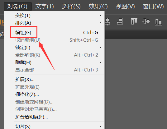 4、选择这些图形,在找到对象菜单里的编组选项,如图所示: