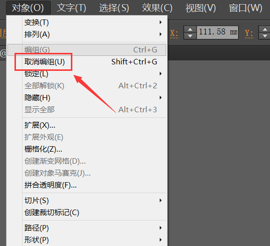 6、再在对象菜单里找到取消编组选项,此时可以看到该选项就被激活了,点击取消编组选项,绘图区里的图形就被取消编组了,如图所示: