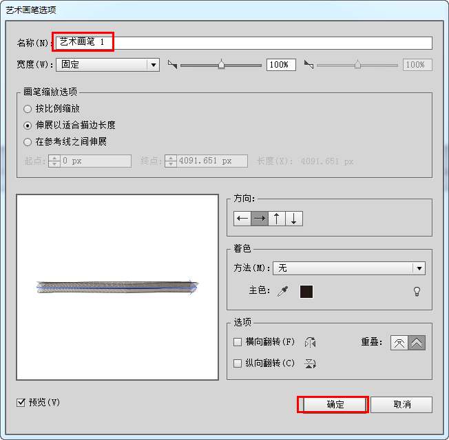 选中所有对象进行自定义艺术画笔设置,如图