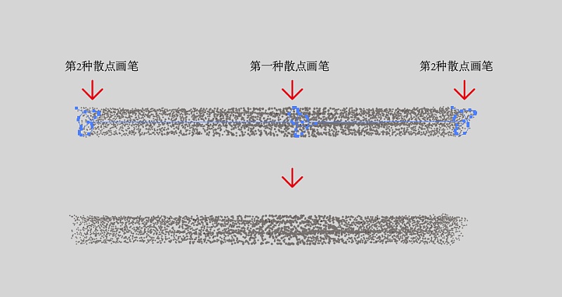 双击调和对象进行入调和图层组分别给三个路径应用到散点画笔样式,得到效果如图