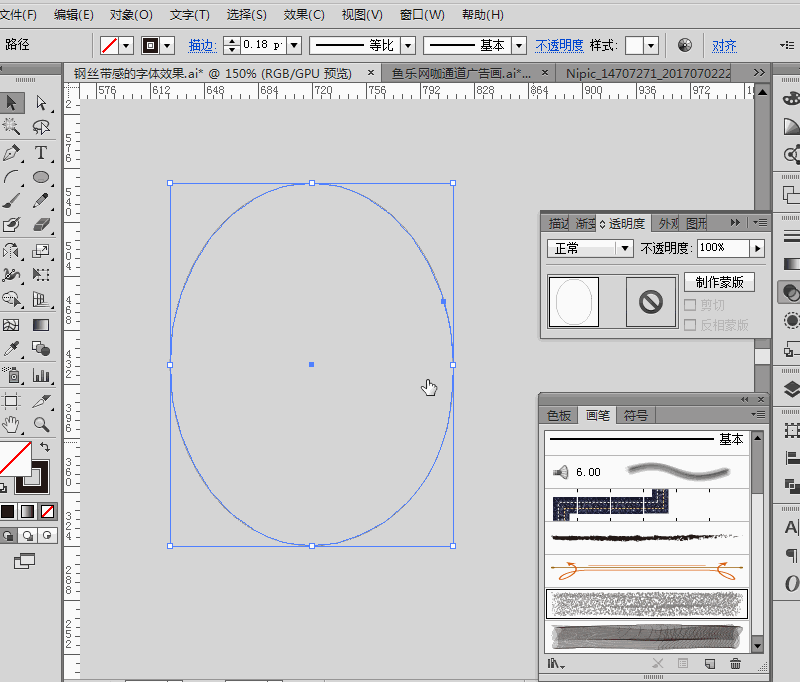 双击空白处退出图层组后,选择所有对象进行自定义艺术画笔,设置同上,到此完成所有自定义艺术画笔制作;