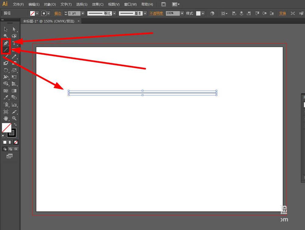 2、用“直线工具”,或是“钢笔工具”画一条线,如下图画了一条直线