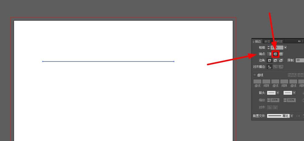 6、然后在“描边”窗口中,端点改为“圆头端点”,如图所示位置