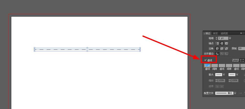 7、勾选“虚线”