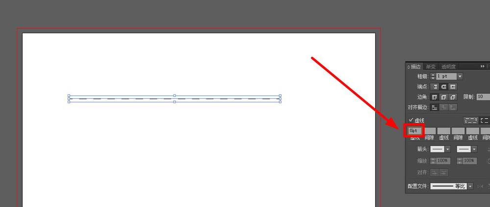 8、将第一个“虚线”值改为0,如图所示区域