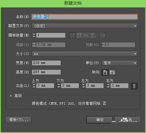 1、打开ai的软件,执行菜单栏中的文件—新建,或者直接使用快捷键Ctrl+N新建一个A4大小的文档。