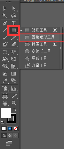 2、选择工具栏中的圆角矩形工具,在工作区面板上直接鼠标点击拖动即可绘制一个圆角矩形。