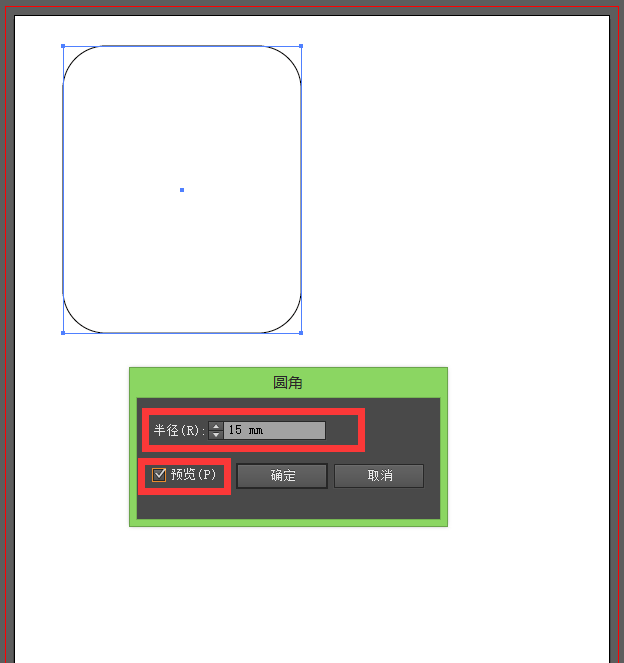 3、点击后,弹出一个圆角半径设置框,我们设置圆角的半径,点击预览,可以看到效果,设置好后,点击确定。