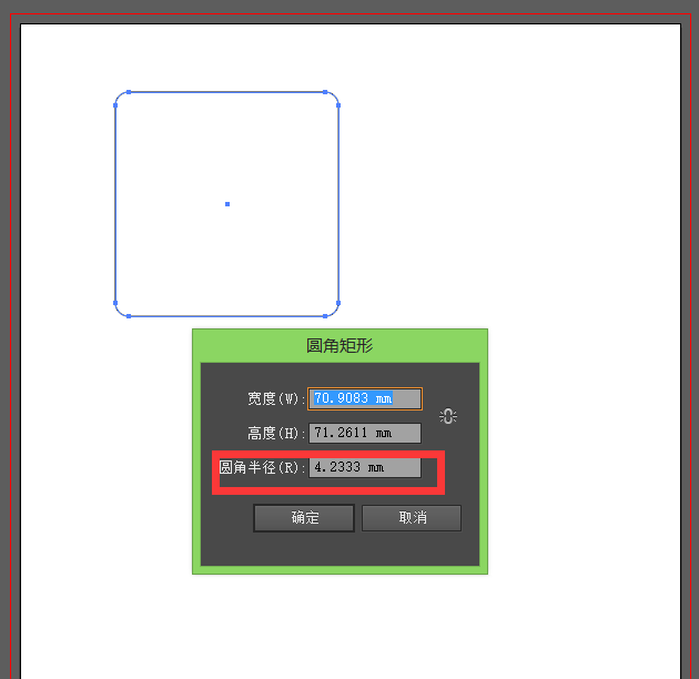 2、按住Alt键,同时鼠标点击拖动, 画出一个由中心点向四周放大的圆角矩形。