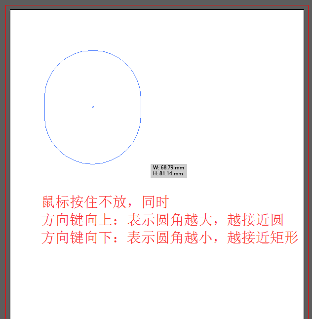 方法二:我们选择圆角矩形后,在画布上点击拖动画出一个矩形,注意按住不放,同时点击方向键向上表示圆角越大,方向键向下表示圆角越小。
