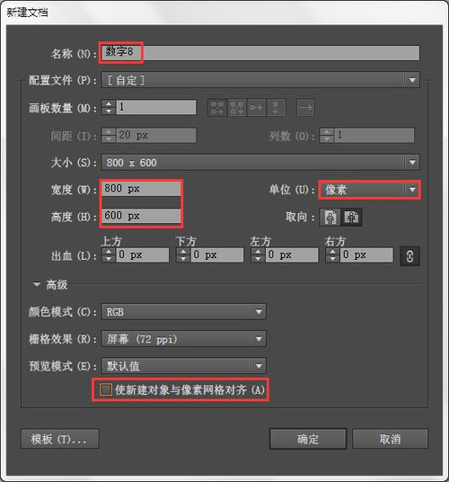 1.新建一个文档,参数如下图,不要勾选"使新建对象与像素网格对齐"。