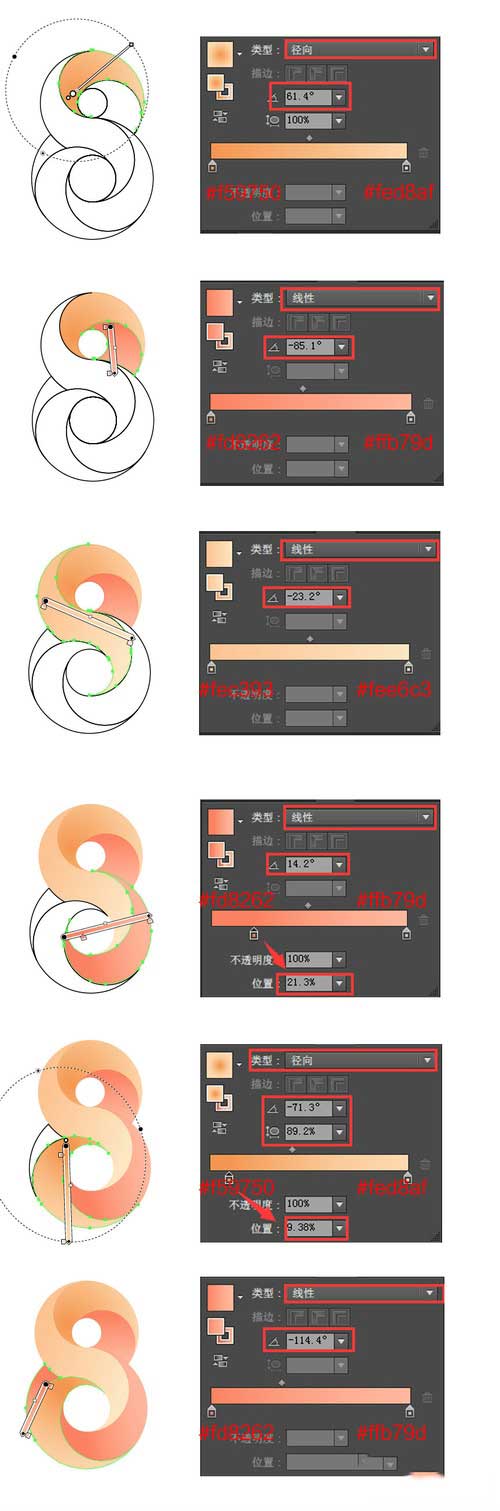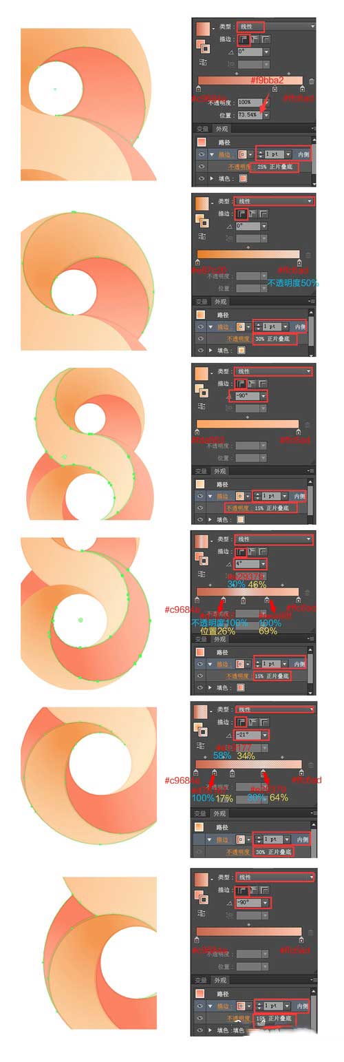 15.给每个区域添加描边~描边一样是渐变哦,比较麻烦,还是要耐心耐心再耐心~~效果虽然都很微弱,但是加上整体效果棒很多哦!