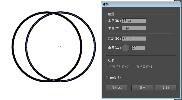 ②复制→粘贴在前面→水平移动99px,如图。