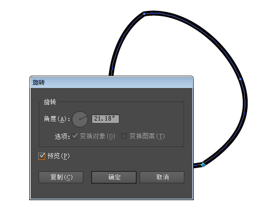⑤选择旋转工具,以底部锚点为中心进行复制及旋转。由于要做17个花瓣,因此角度是21.18°。