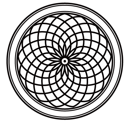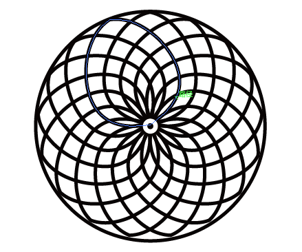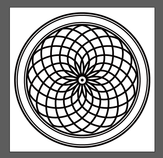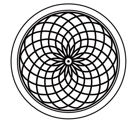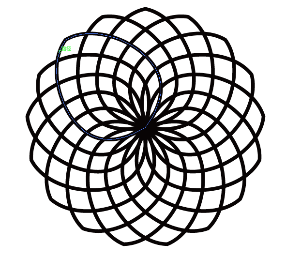 ③将这三组图形编为一个组,以画布中心点为基准,复制→旋转(度数是21.18°),重复动作,结果如图。