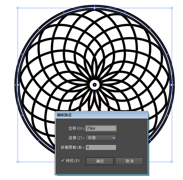 ⑤选择外数第二个大圆,偏移路径10px,进行如下设置。