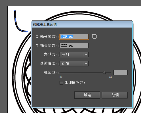⑧接下来给空白部分添加些装饰。使用弧形工具画叶子,参数如下: