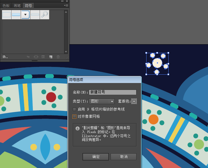 ⑥最后再添加一些装饰性符号。打开符号面板,选择一组大小圆组合,新建一个符号。