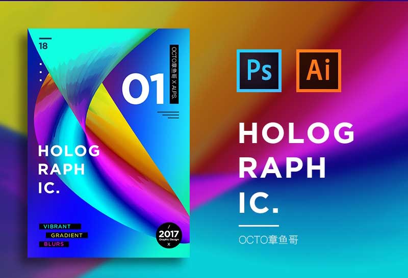 使用Illustrator结合Photoshop制作抽象流体彩色渐变海报,教程主要分为三大部分,分别是在AI制作渐变背景,这主要利用ai的渐变网格来实现,操作起来很简单;然后是在PS中制作海报;最后是动图制作,就是做成改变色相的gif动图,效果非常不错,很时尚,很炫酷,喜欢这种风格的小伙伴可以仔细看看!