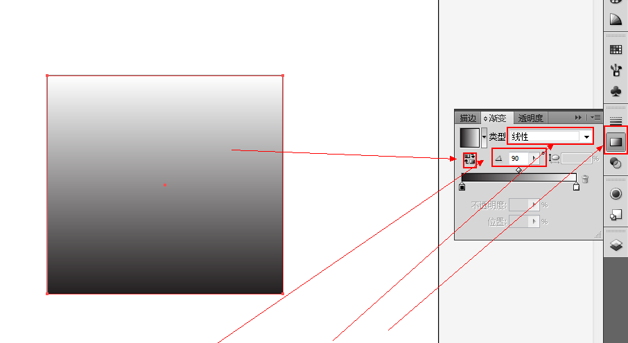 4、做好我们的渐变色之后,我们会发现我们的渐变色方向错了,我们可以点击我们右边的“渐变”,进入渐变修改器后,在里面调整我们的渐变角度,如下图。