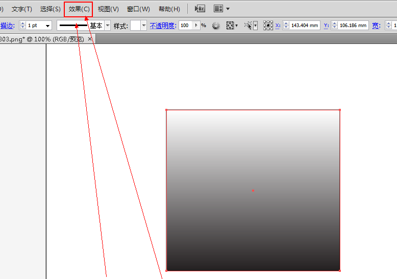 5、将我们的渐变角度调整好之后,我们接下来就要给这个矩形添加我们所需要的噪点了,我们点击我们菜单栏上的“效果”选项