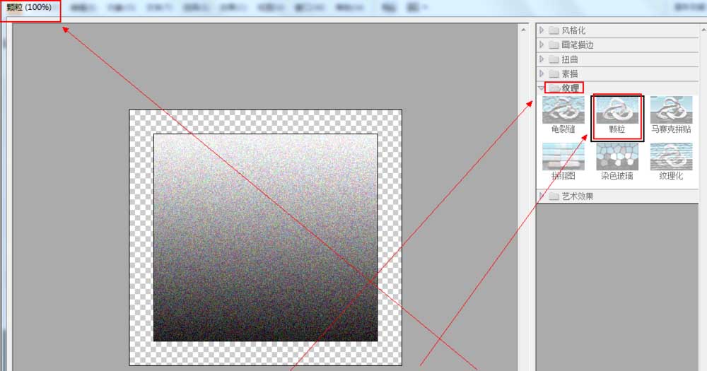 6、点击进入我们的“效果”选项之后,找到“纹理”,并在“纹理”里找到并点击我们的“颗粒”。