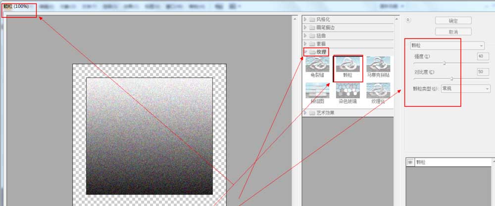 8、大家可以根据自己的需求,对颗粒的类型进行设置,这里我就选择了“点刻”类型的颗粒给大家做示范,做到这里我们的添加噪点基本上是完成了。