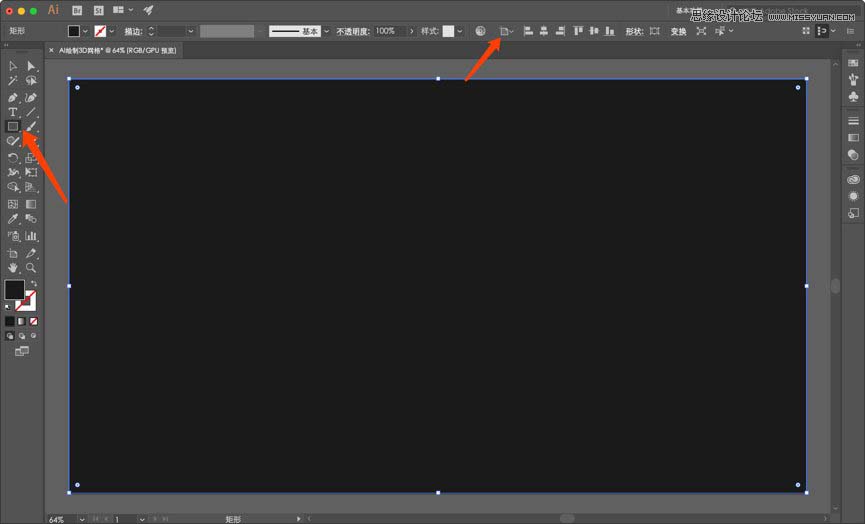 然后点击矩形工具绘制举行矩形,大小1920*1080 颜色1a1a1a然后点击对齐画板进行对齐。