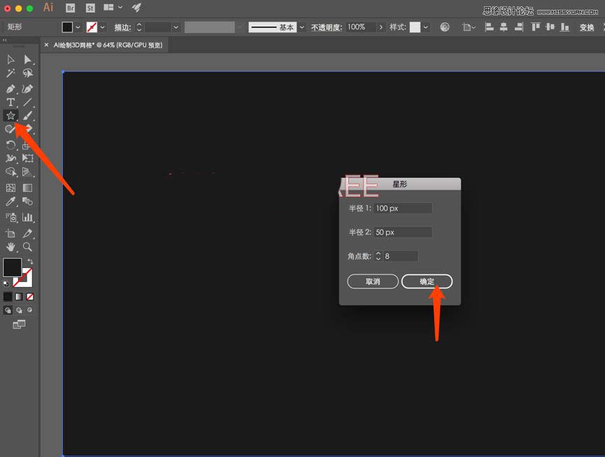 然后点击星形绘制工具,参数设置如下,点击确定即可。