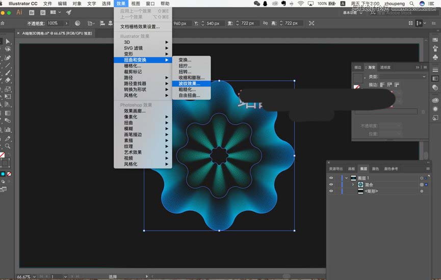 [3]然后选中整体 点击效果-扭曲和变化-波纹效果