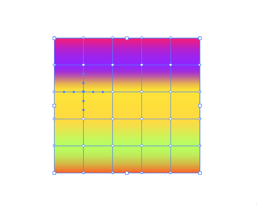 3、设置好渐变网格后,选用小白工具,点击网格上的小锚点,将每个锚点按照你喜欢的颜色进行填色,你也可以先一排一排填好一样的颜色,之后再更改