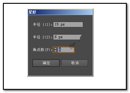 4、同样,要画出四角星形,把角点数修改为“4”;再点确定。画布上即显出四角星。