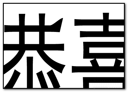7、同上操作,我们对“喜”、“发”、“财”进行操作。如图中所示的效果。