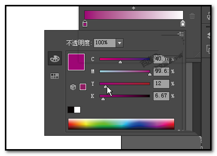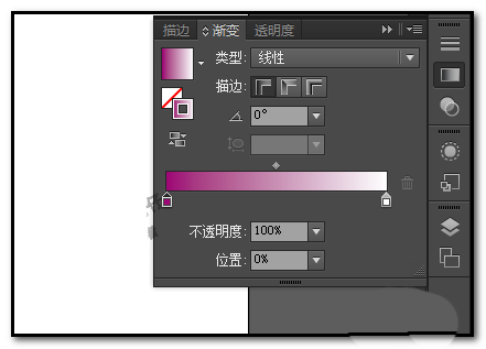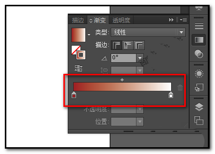 4、这时,界面右侧显示出渐变的面板;面板中显示一条颜色带,鼠标在颜色带左下方点下,显出渐变滑块。