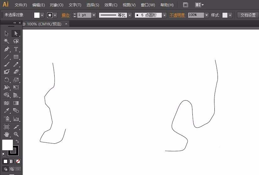 1、我们先打开Adobe Illustrator,创建文档,然后用钢笔工具画随便两个线段,作为演示使用。