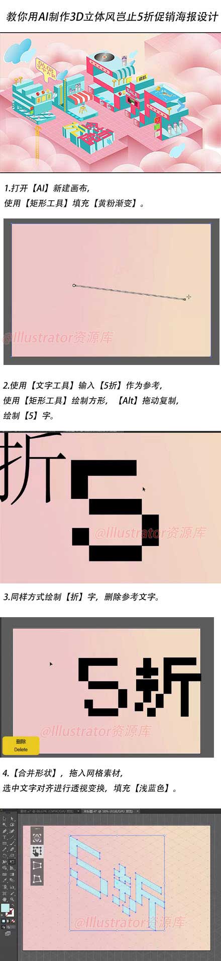 教你用Illustrator制作3D立体风岂止5折促销海报,教程制作的海报风格在电商设计中很常见,立体感十足,整体呈粉色系,挺漂亮,难度也不是很大,主要是设计思路及绘制方法的分享,多思,多练,多借鉴,转给需要的朋友~