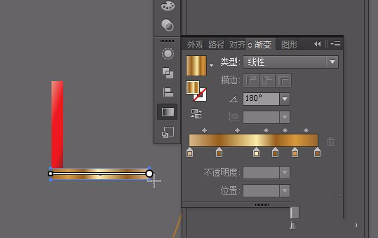 5.绘制一个矩形。填充渐变色。红色线性渐变: ①#e89282②#ee1a20③#ec181d④#5d242d 金色线性渐变: ①#d7b787②#975e19③#faeca5④#995f1d⑤#d7993b⑥#d7b787 角度180°。