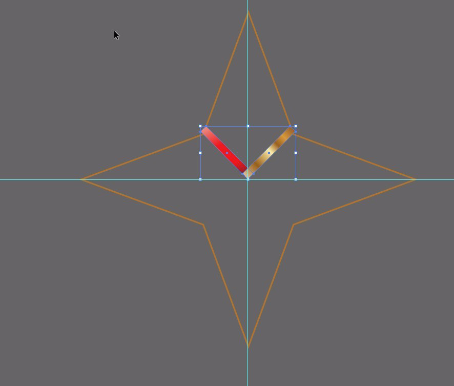 4.找到星形工具。按下方向键。绘制一个四角星。按住shift绘制的正的四边形。按ctrl+R调出标尺,从标尺拉出两条辅助线。并将星星调成只有描边。