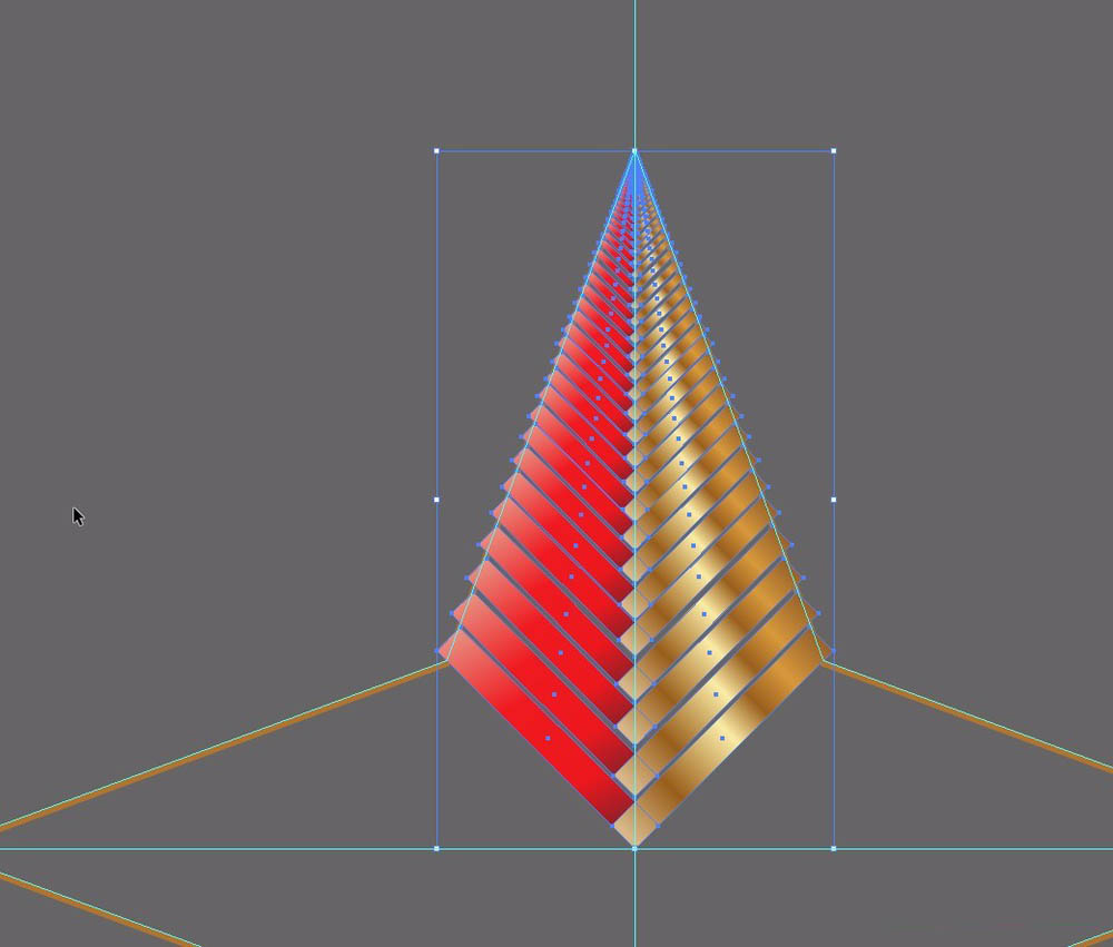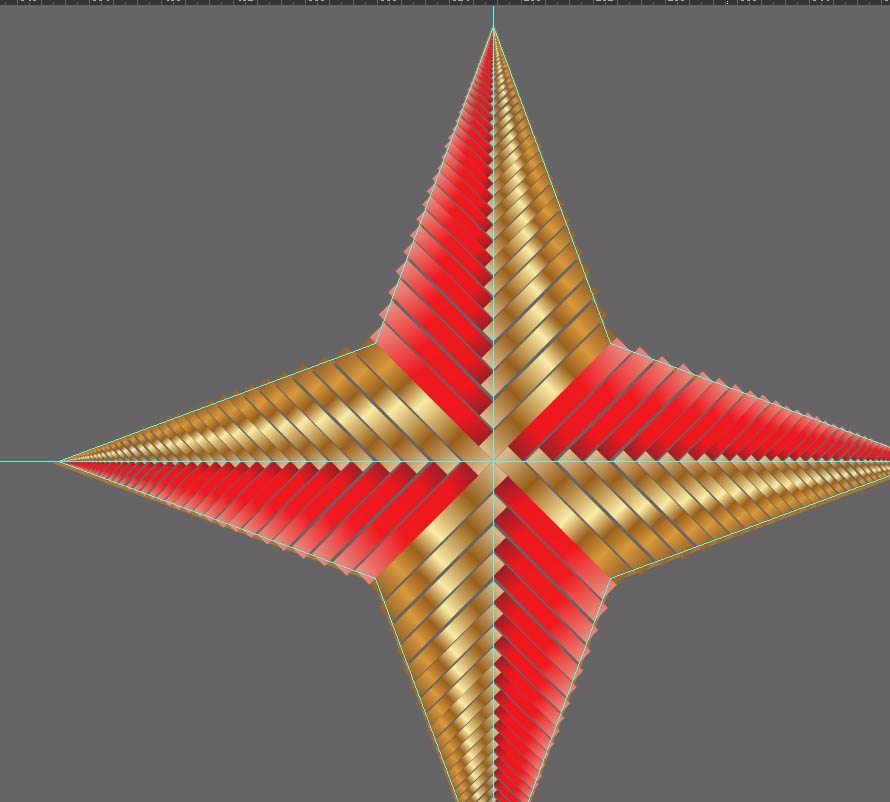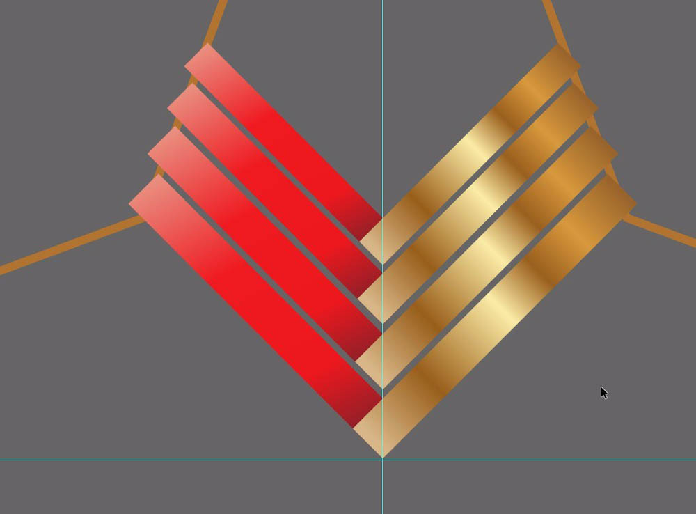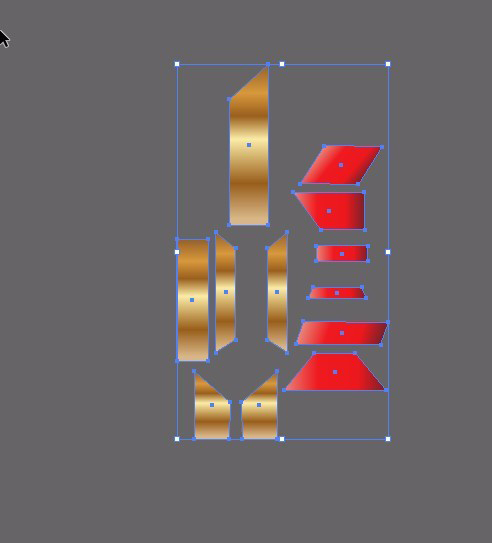 10.除了图案可以绘制折纸效果,文字也是可以的。颜色模式用这两种红色线性渐变: ①#e89282②#ee1a20③#ec181d④#5d242d 金色线性渐变: ①#d7b787②#975e19③#faeca5④#995f1d⑤#d7993b⑥#d7b787。首先要找到适合折纸的文字。例如字体:锐字锐线梦想黑简1.0。然后绘制组成字体的基本形状。用直接选择工具选择需要调整的点。再配合比例缩放工具,镜像工具,旋转工具等绘制。